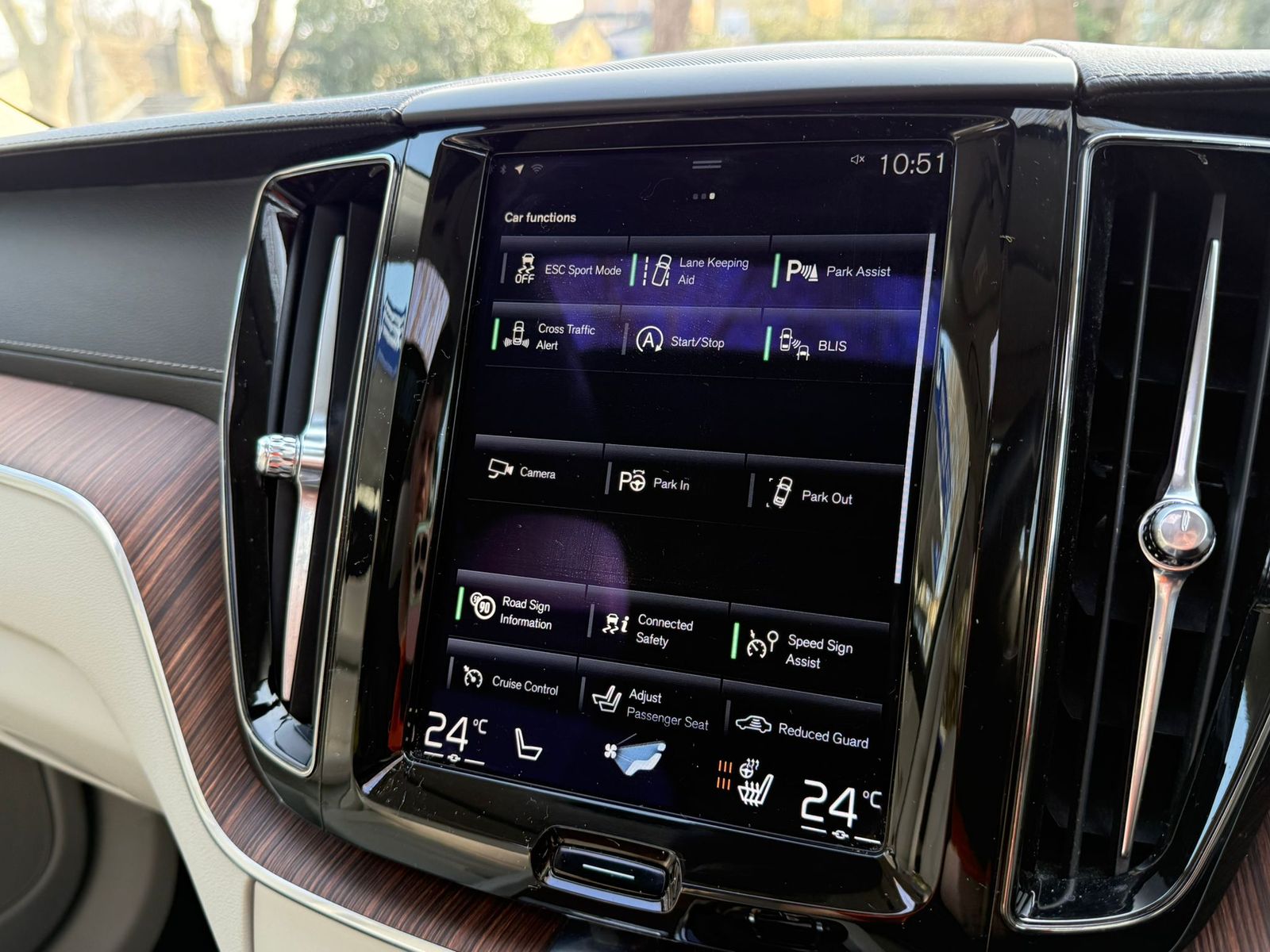 Step inside to a realm of luxury, where Nappa Soft Leather, perforated and ventilated in a stunning Blonde finish, embraces you. The Linear Lime Inlays bring a modern touch, perfectly complementing the high-end comfort of heated and ventilated front seats, which even include a massage function for unparalleled relaxation. The intuitive layout includes a 12.3" Active TFT Crystal Driver's Information Display, ensuring essential information is always at your fingertips. With practical features like ISOFIX attachments and the Whiplash Protection System, safety harmonises with style.